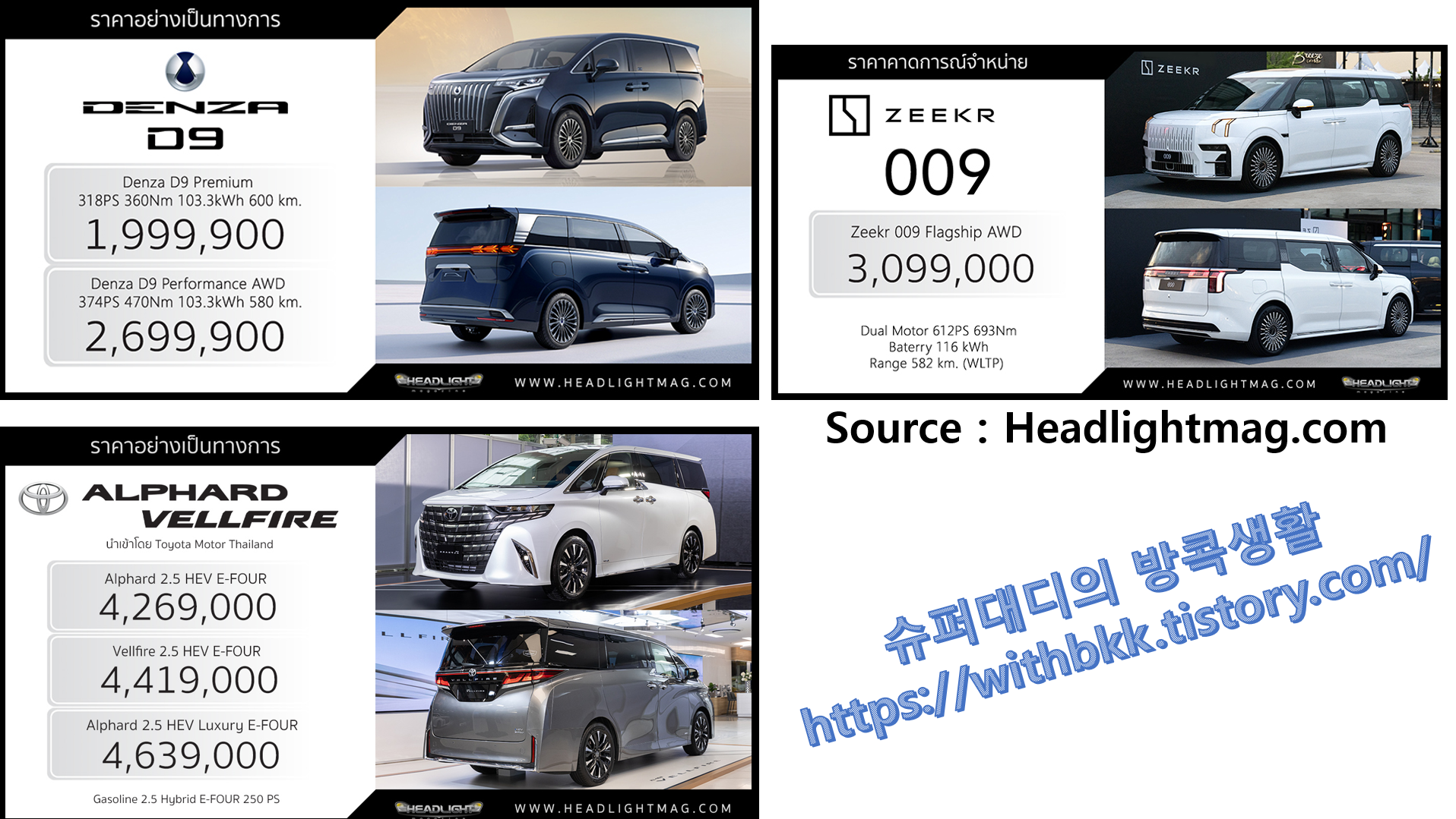 1. 덴자 D9 기본모델 1,999,900 바트 8천5백만원 / 최고 모델 2,699,900 바트 1억 1천만 원